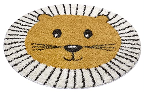Zala living Rond Vloerkleed Kinderkamer Lion Tahl – Okergeel & Crème, 160 cm rond | Dieren Leeuw Tienerkamer Baby Jongens Babykamer | Geschikt voor